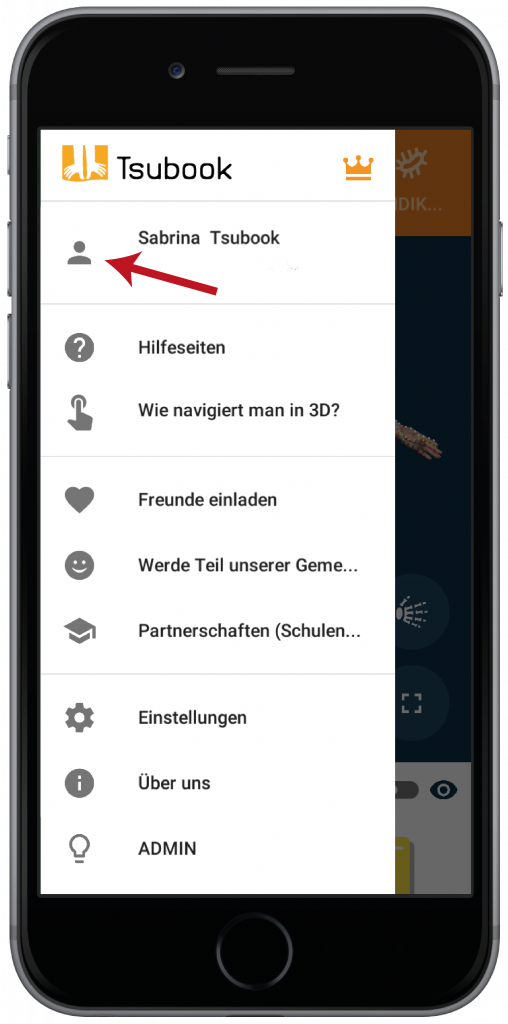 - Log dich in die App ein und klicke auf das seitliche Menü