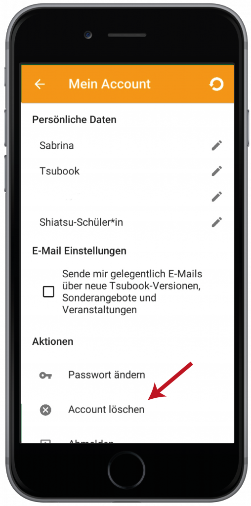 - Skrolle die Liste nach unten bis du den Punkt „Konto löschen“ findest